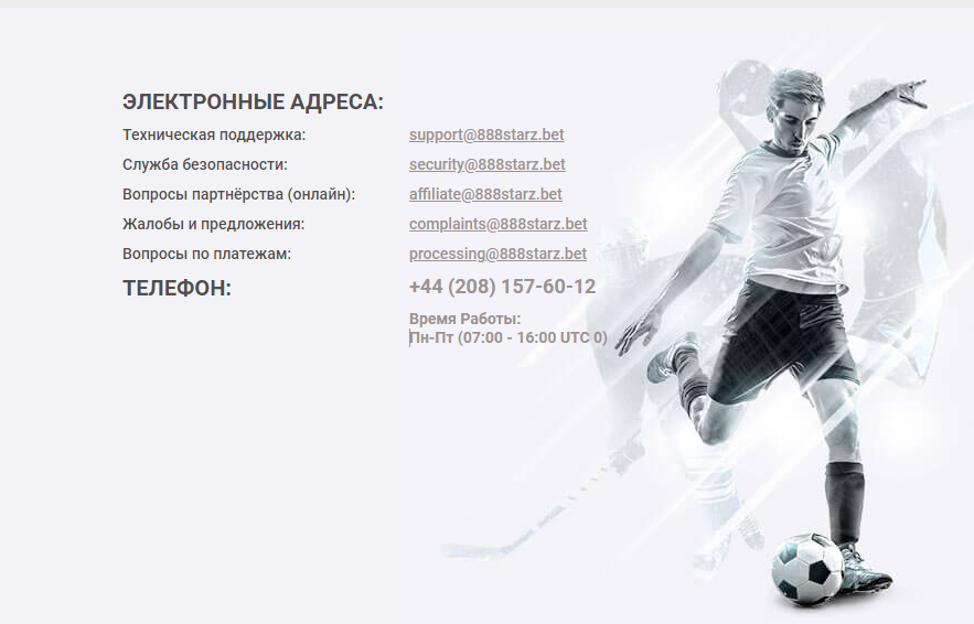 На сегодняшний день пользователи компании 888 starz могут связаться с поддержкой разными вариантами. Например, написать в чат онлайн или позвонить по номеру телефона. Все вопросы будут решены в течение 24 часов с момента обращения.